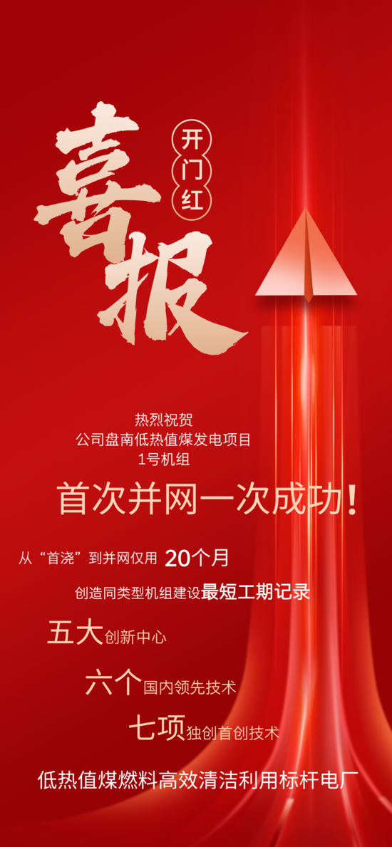 重大喜讯!公司盘南低热值煤发电项目1号机组首次并网一次成功! | |